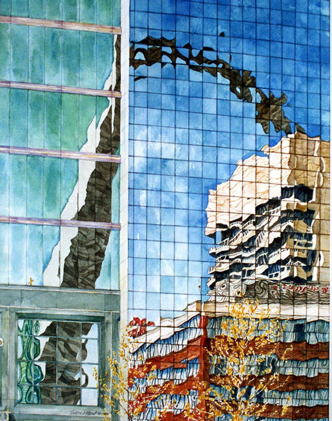 It’s The Arch January 16, 2018June 22, 2021 / lafaust8aolcom pencil & watercolor painting of the arch reflecting onto buildings downtown St. Louis 19″x26″ $145.00